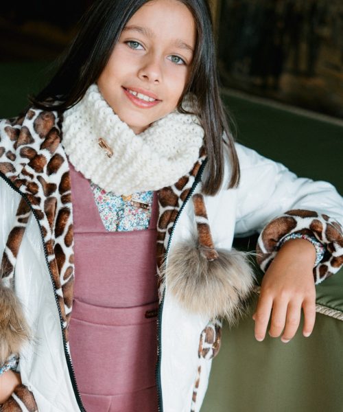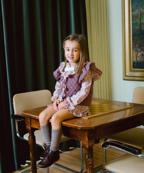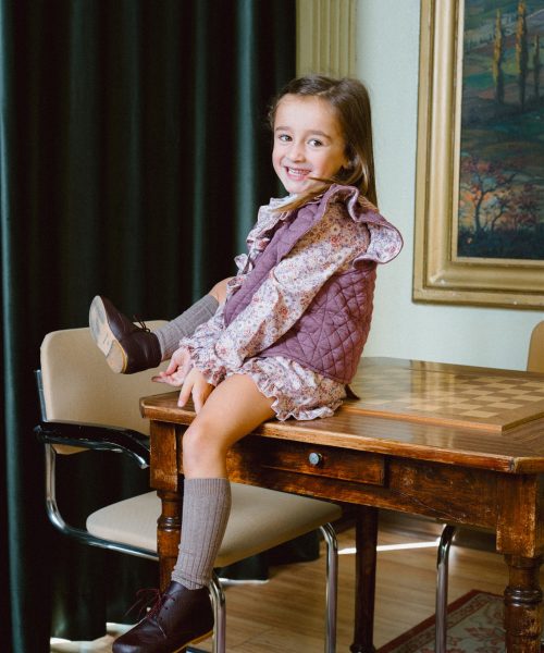 CHALECO INNOKO: acolchado berenjena reversible, con interior floral