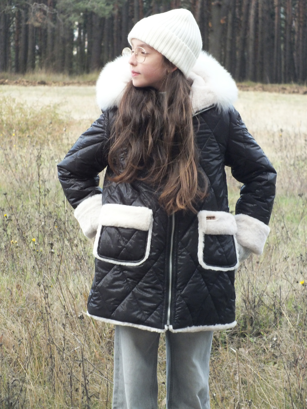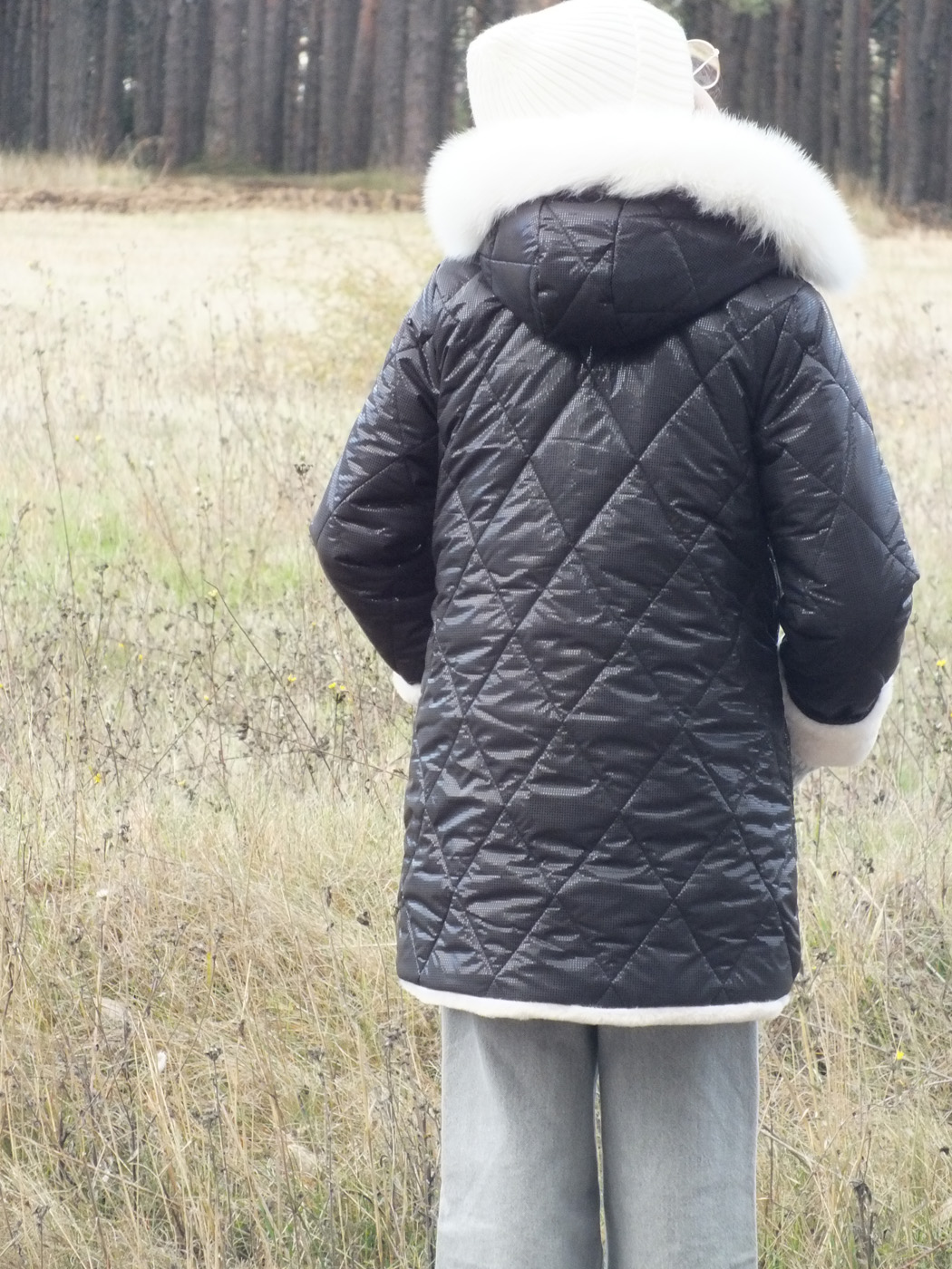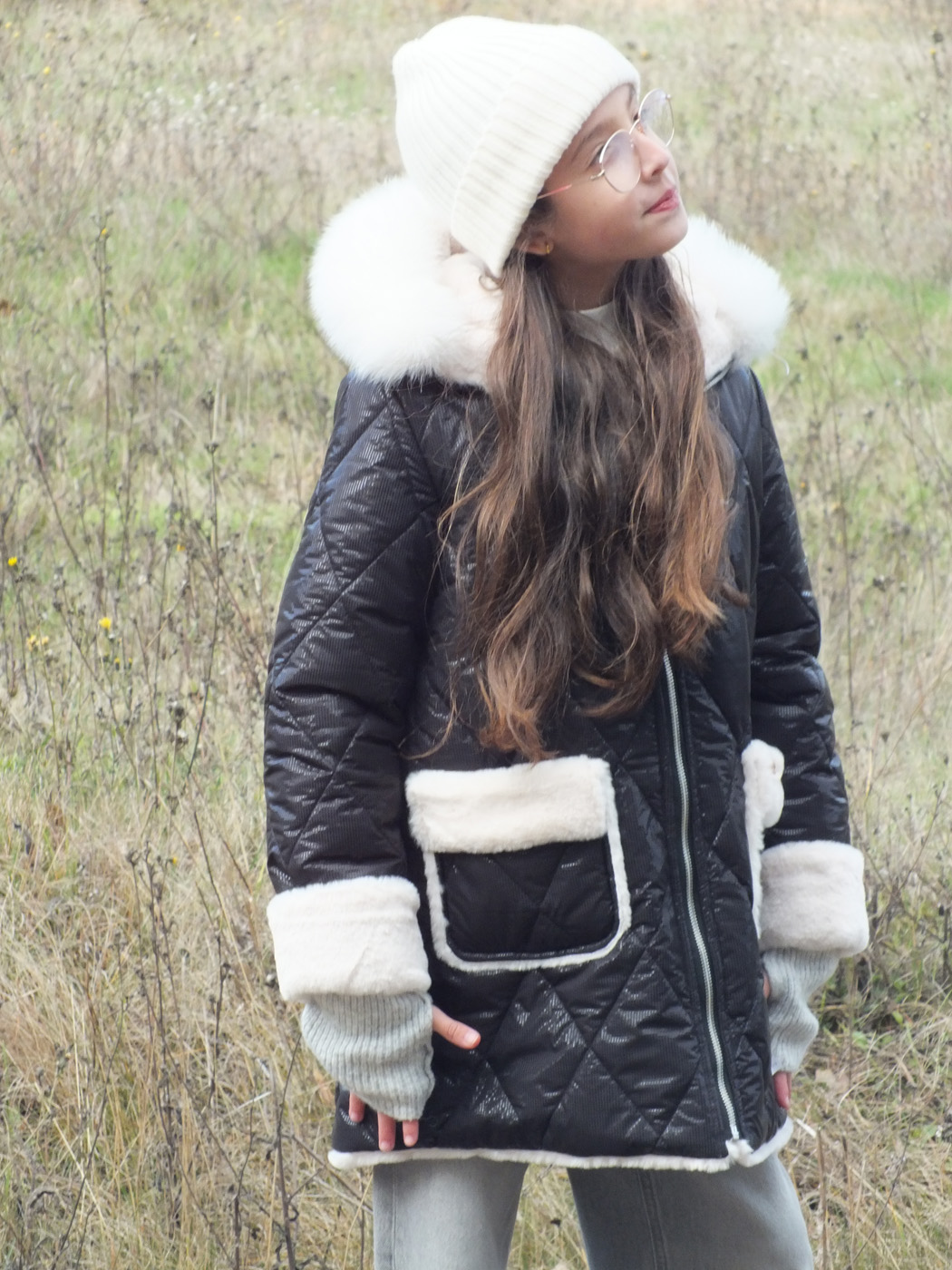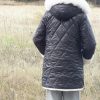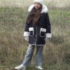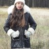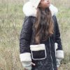 Abrigo acolchado negro con bolsillos.  Peluche crudo en el interior. Abrocha con cremallera. La capucha tiene pelo natural y se desmontan para poder meter en la lavadora.
