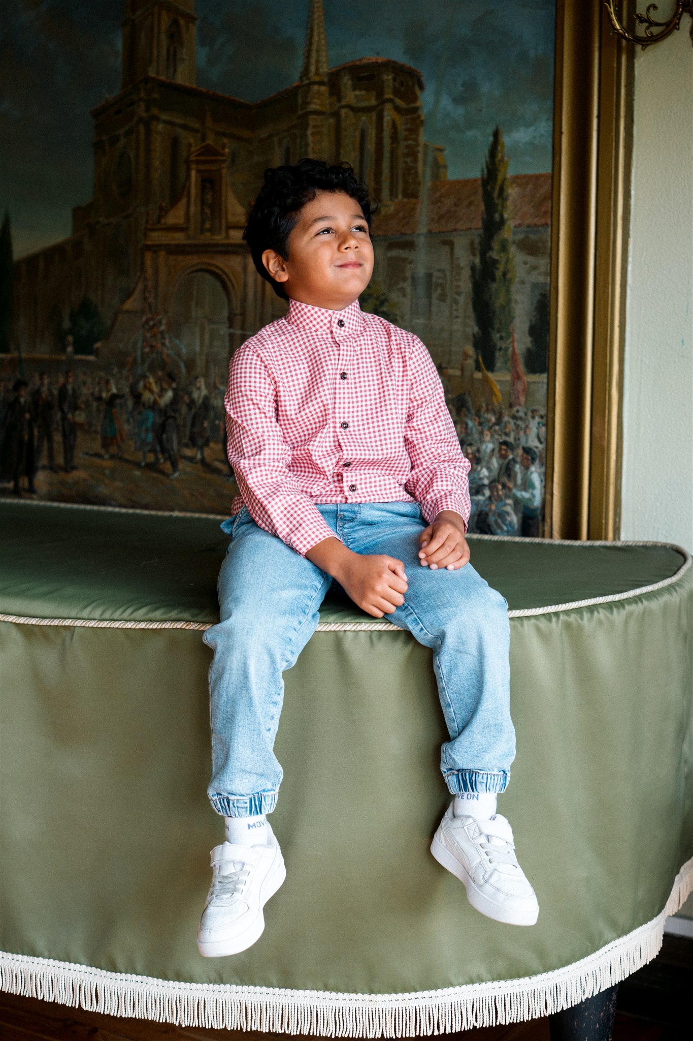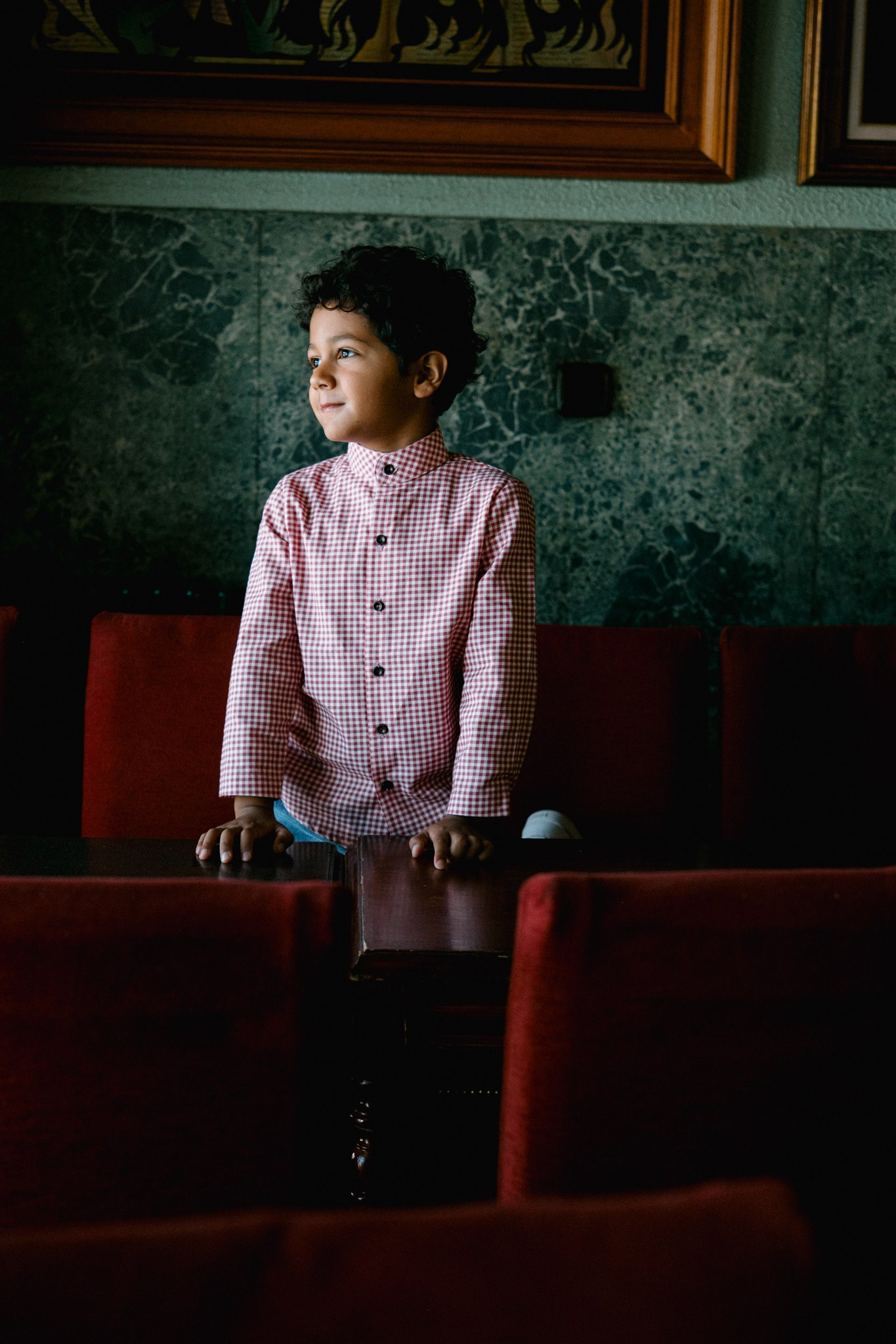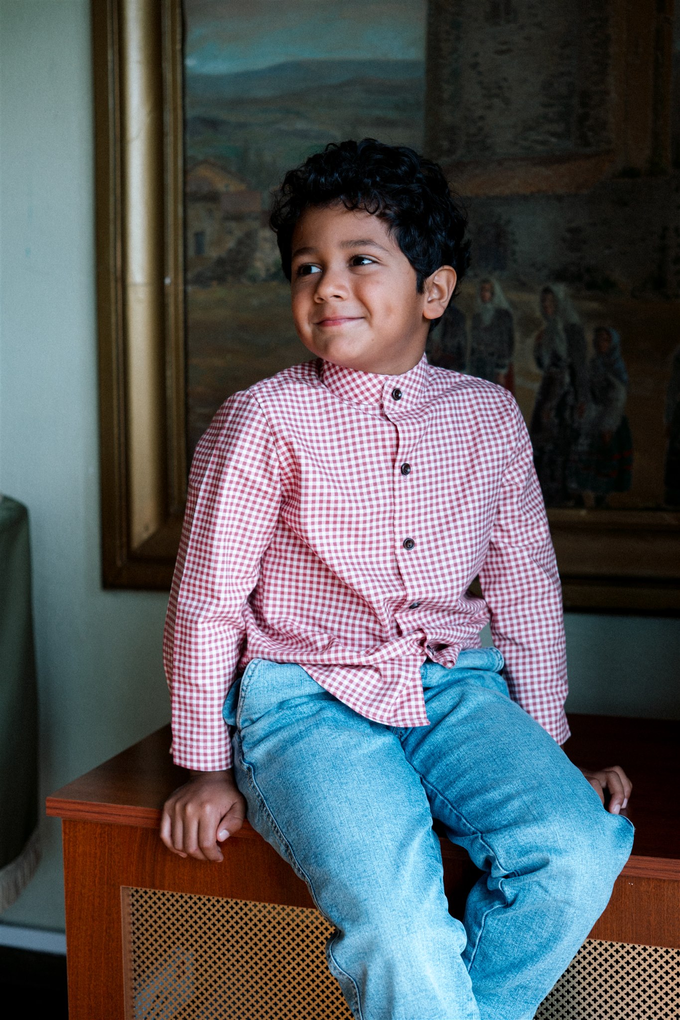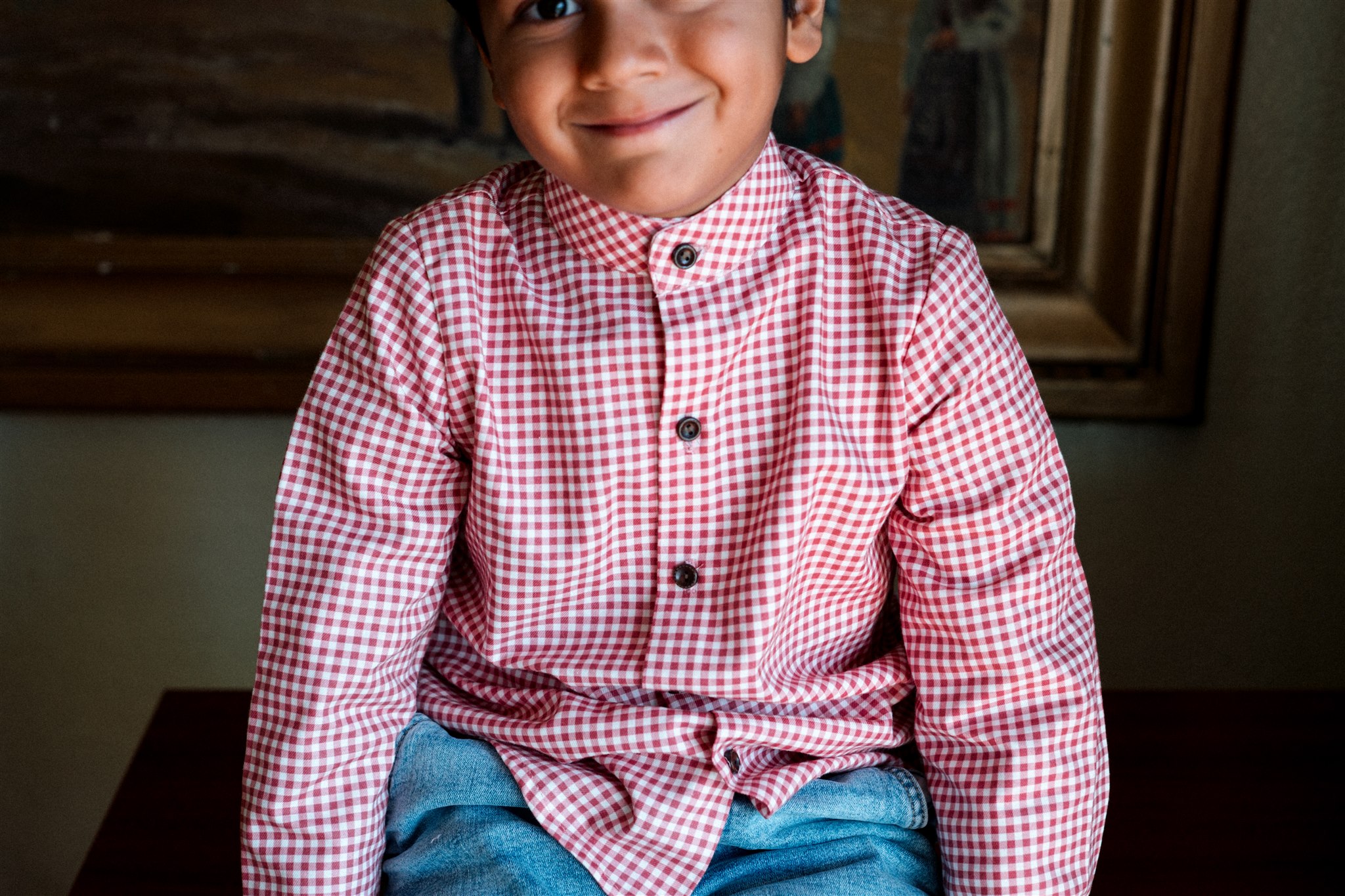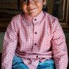 Camisa vichy rojo frambuesa de manga larga . Canesú con pliegue en la espalda. Puño con pliegue y botón. Abrocha  con botones de madera. Combina con la sudadera Chandalar y el pantalón de pana Savage.