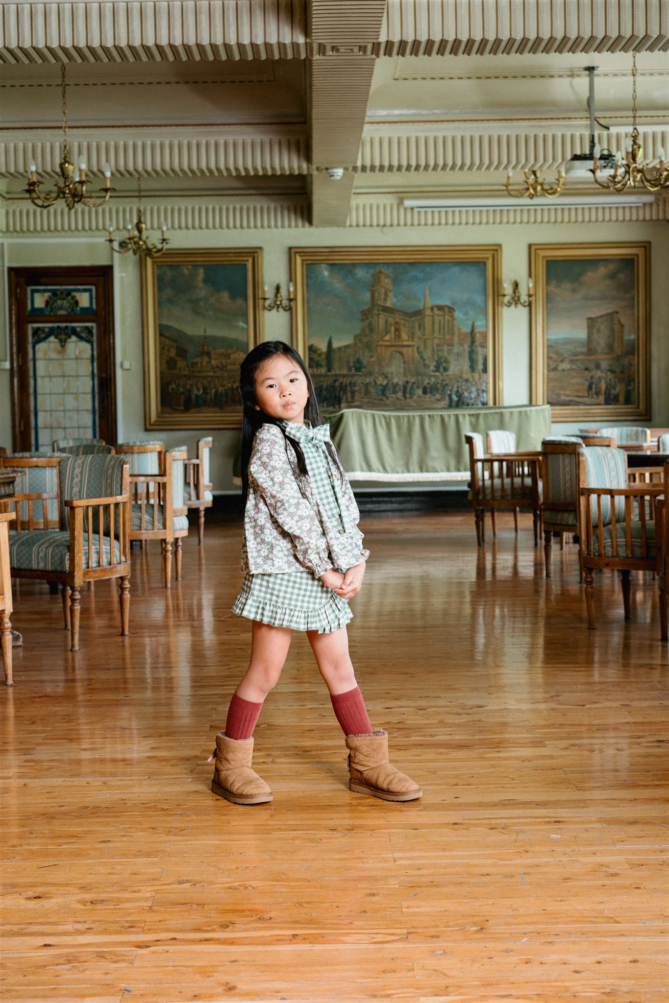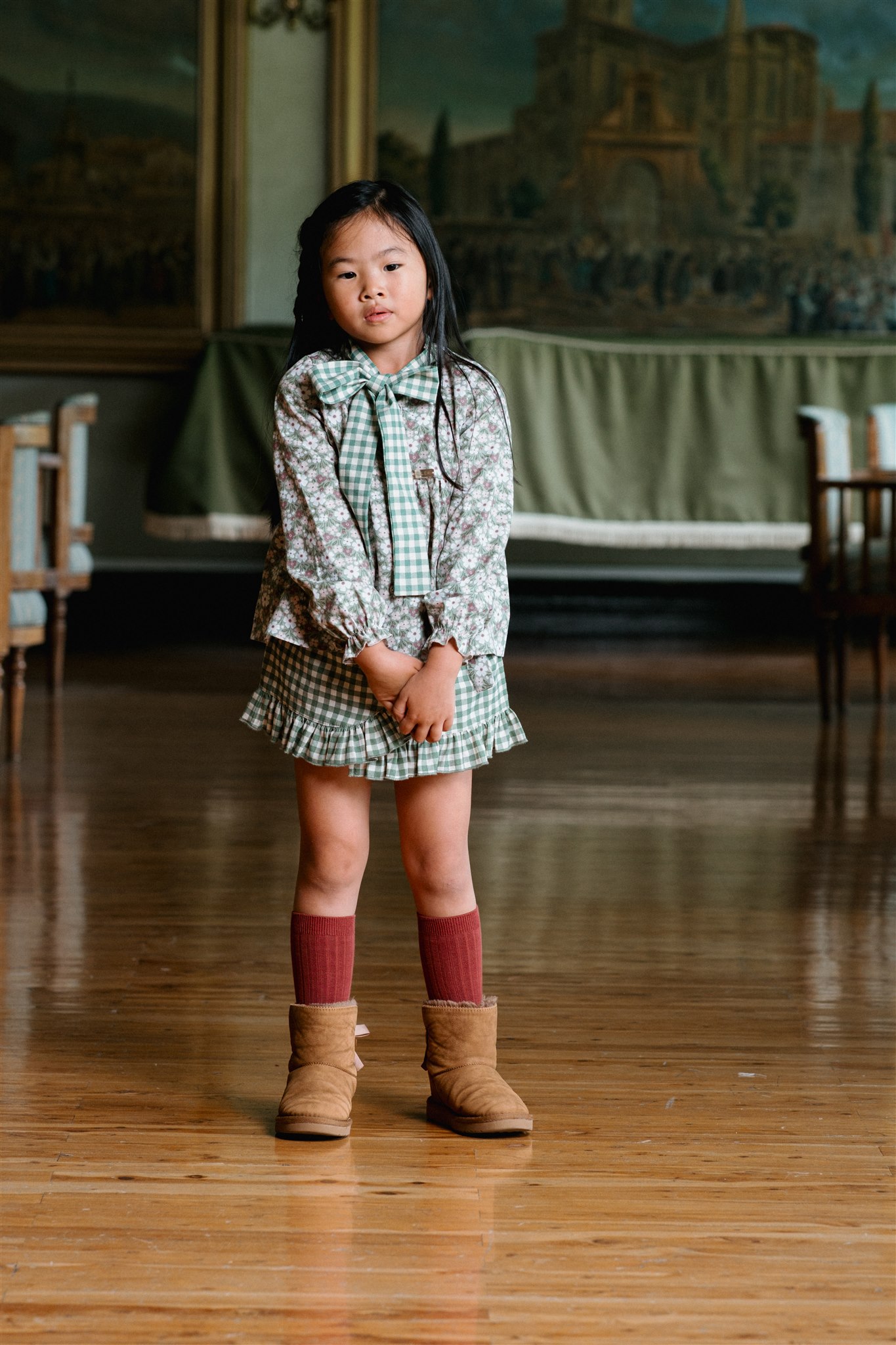 Faldita vichy verde cruzada con braguita. Cintura elástica y volante en el bajo. Combina con la chaqueta Chandalar, blusa Chandalar blusa Nowitna.