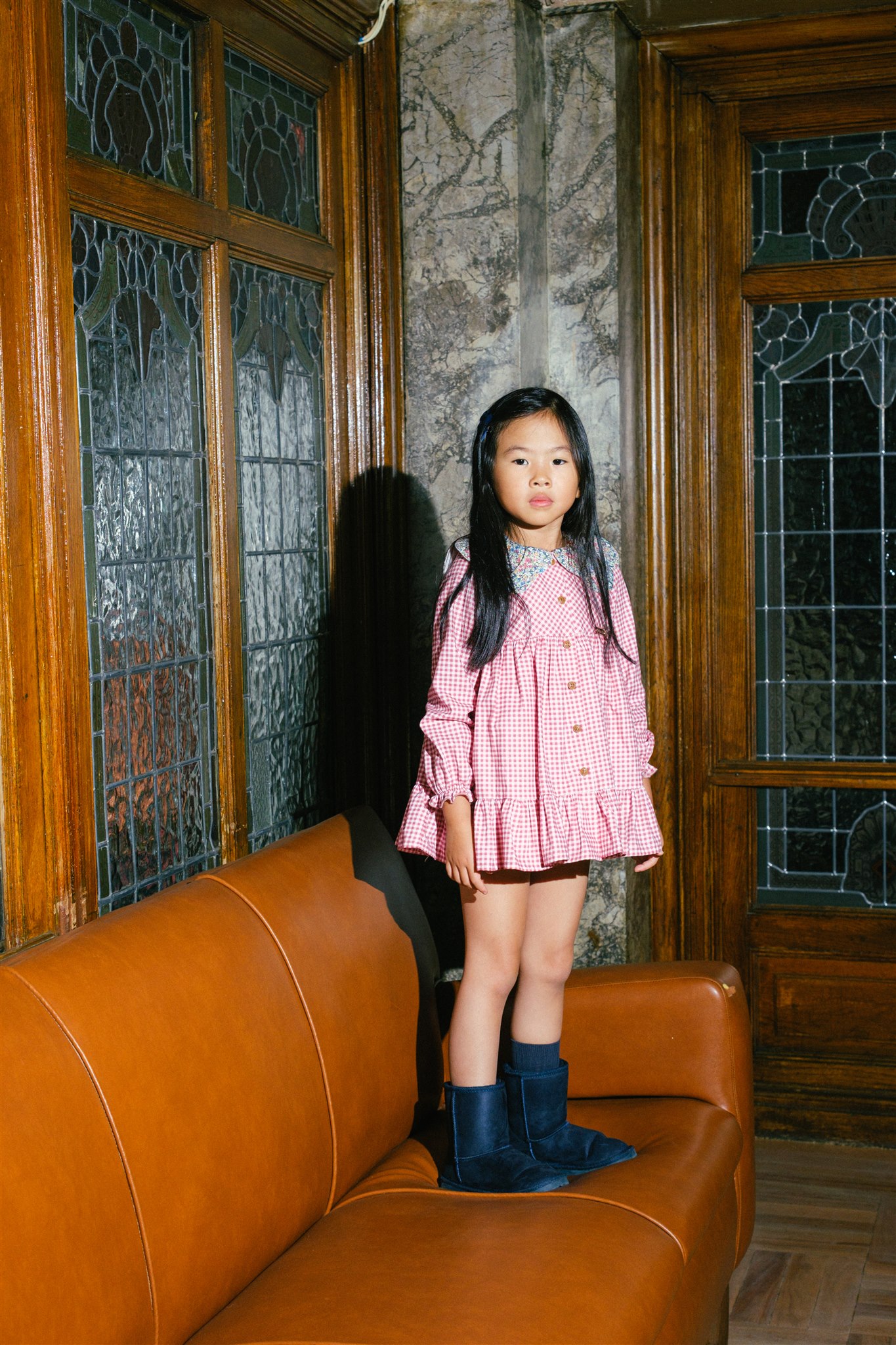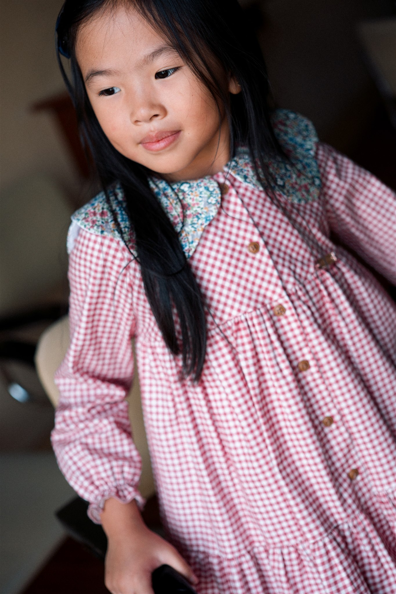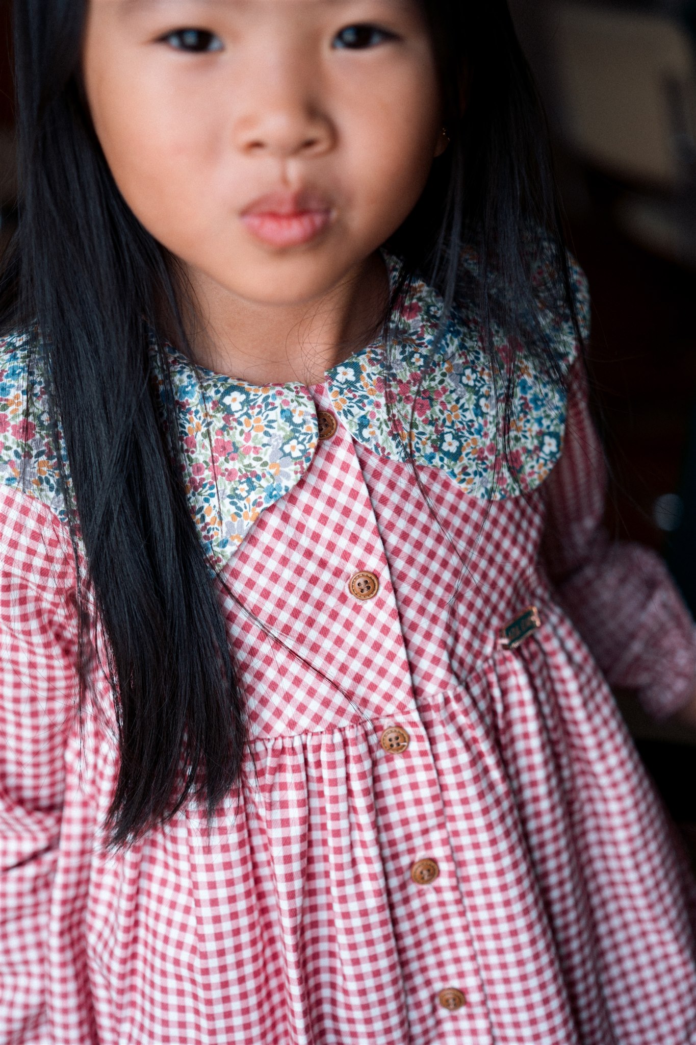 JESUSITO AWUNA: vichy rojo con gran cuello ondas liberty.