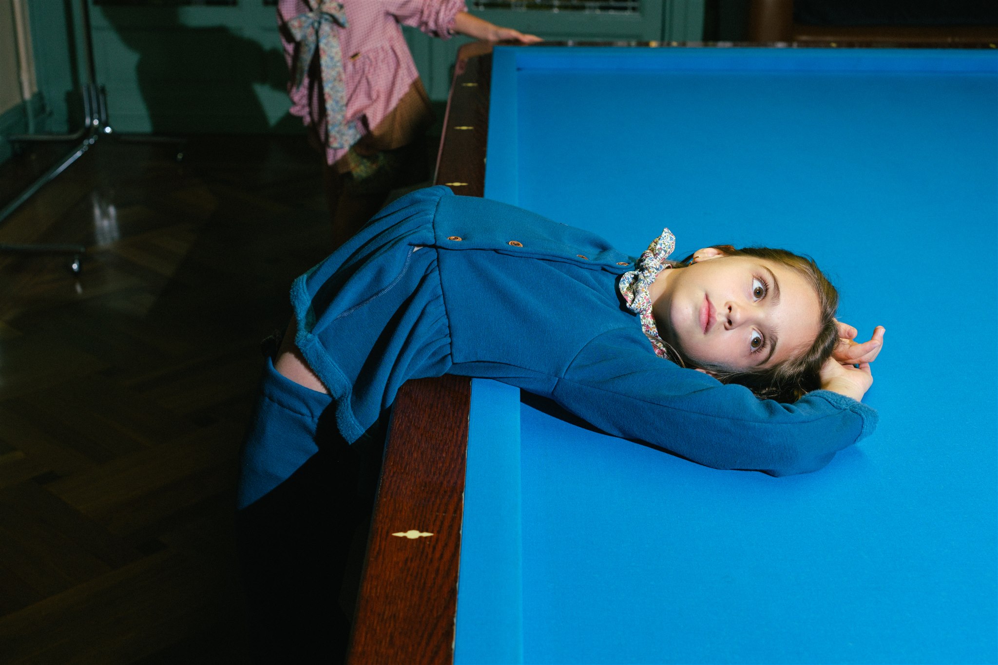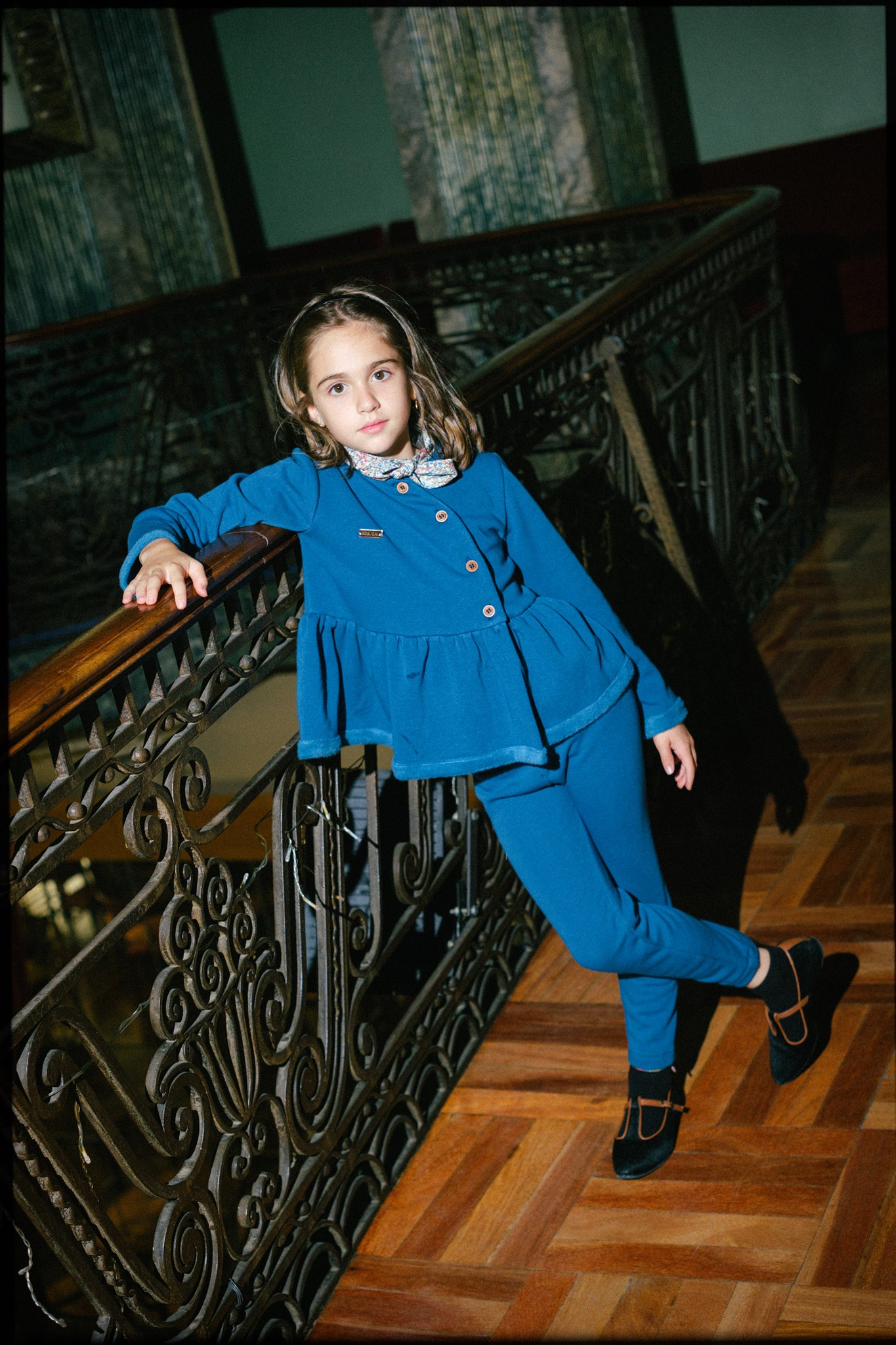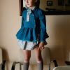 Pantalón azul petróleo. Tejido jogging afelpado grueso y muy elástico. Cintura elástica con lazo estampado Liberty. Se puede hacer un nudo o un lazo. Tejido jogging afelpado grueso y muy elástico.  Combina con la blusa y la chaqueta Kobuk.