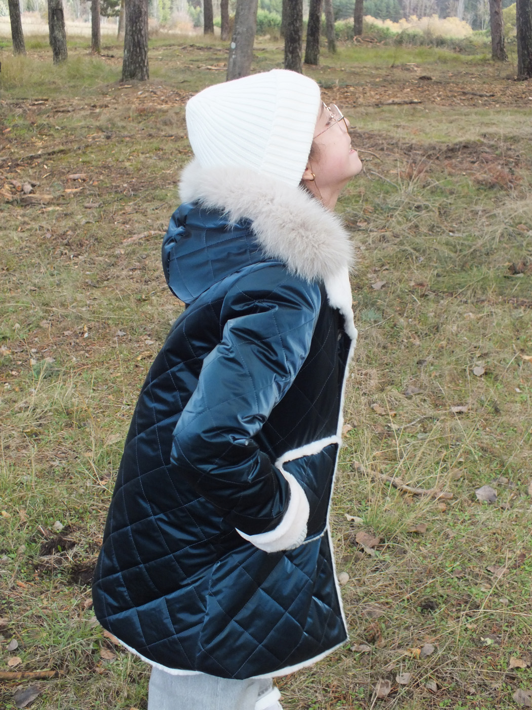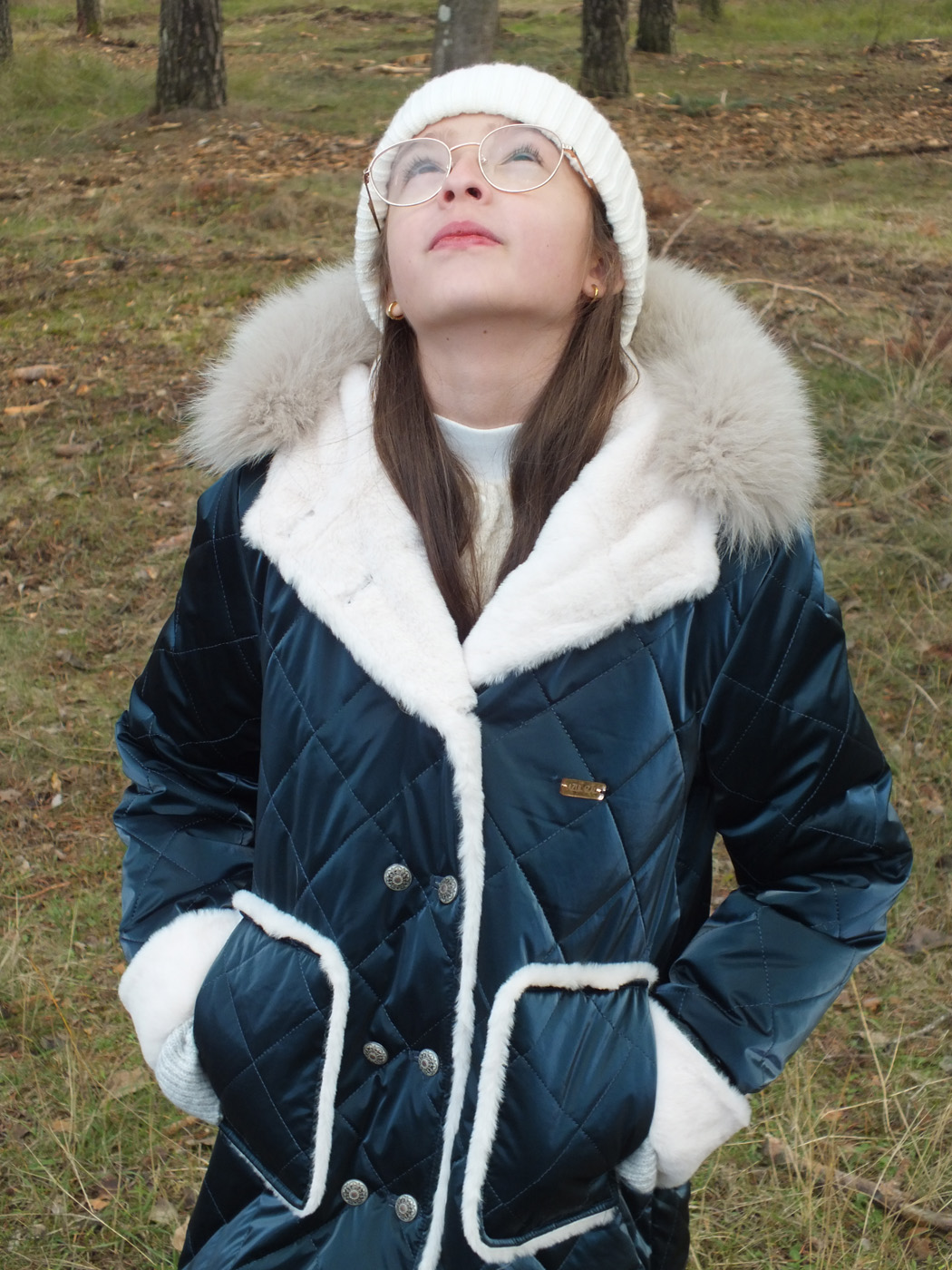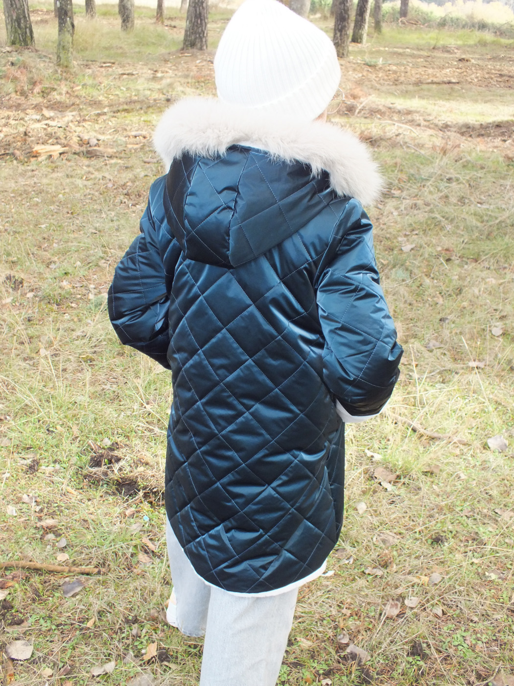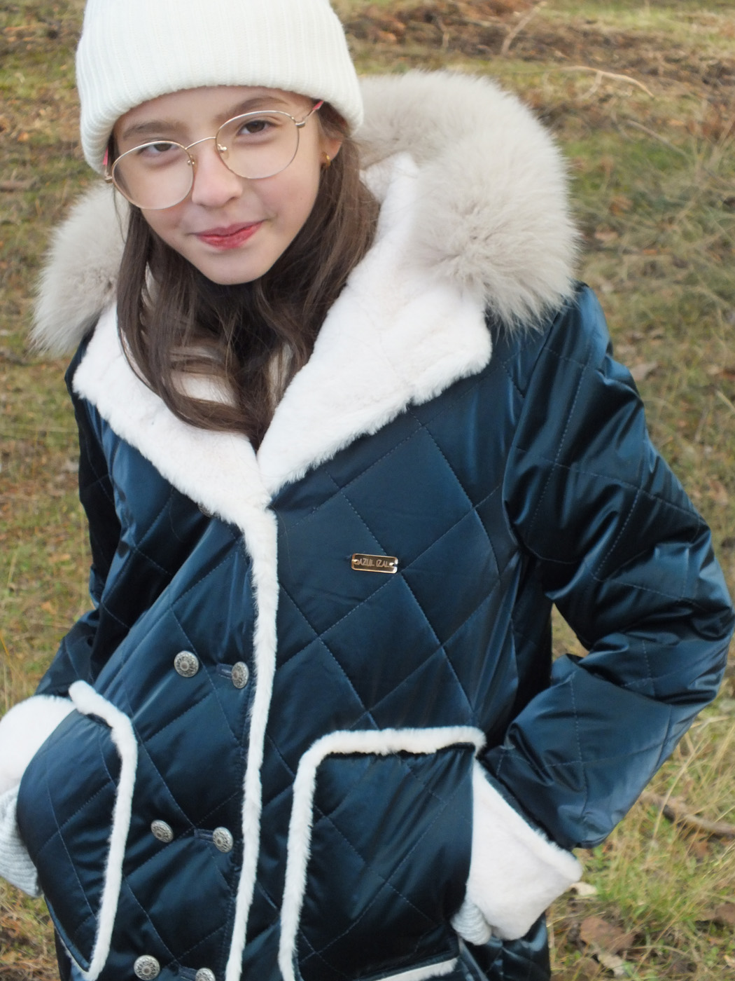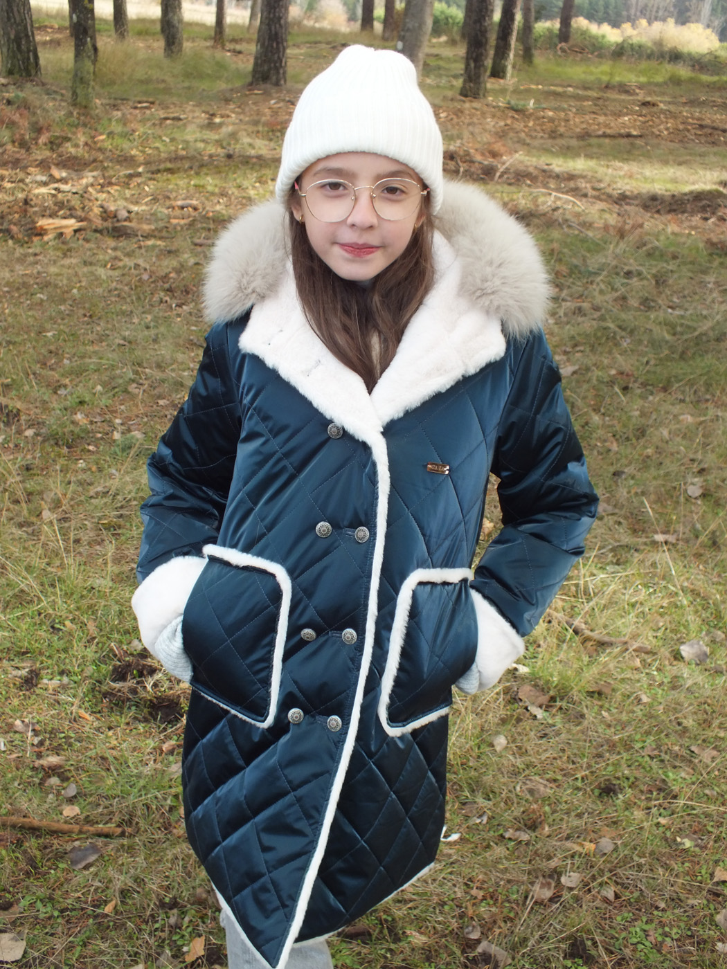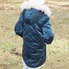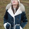 Abrigo acolchado color petróleo. Peluche crudo en el interior. Doble fila de botones metálicos labrados. La capucha tiene pelo natural y se desmontan para poder meter en la lavadora. Los puños se doblan para que dure más de una temporada.